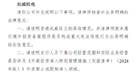 一、请说明香港兆威设立的具体情况,并请律师就未履行境外投资备案程序是否构成重大违法违规行为出具明确结论性意见。 二...