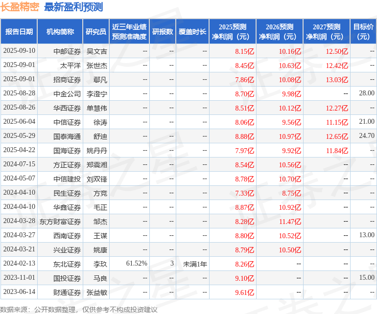 证券之星消息,2025年9月24日长盈精密(300115)发布公告称广发基金张毅 王丽媛 李雅哲 杜威、融通基金任涛...